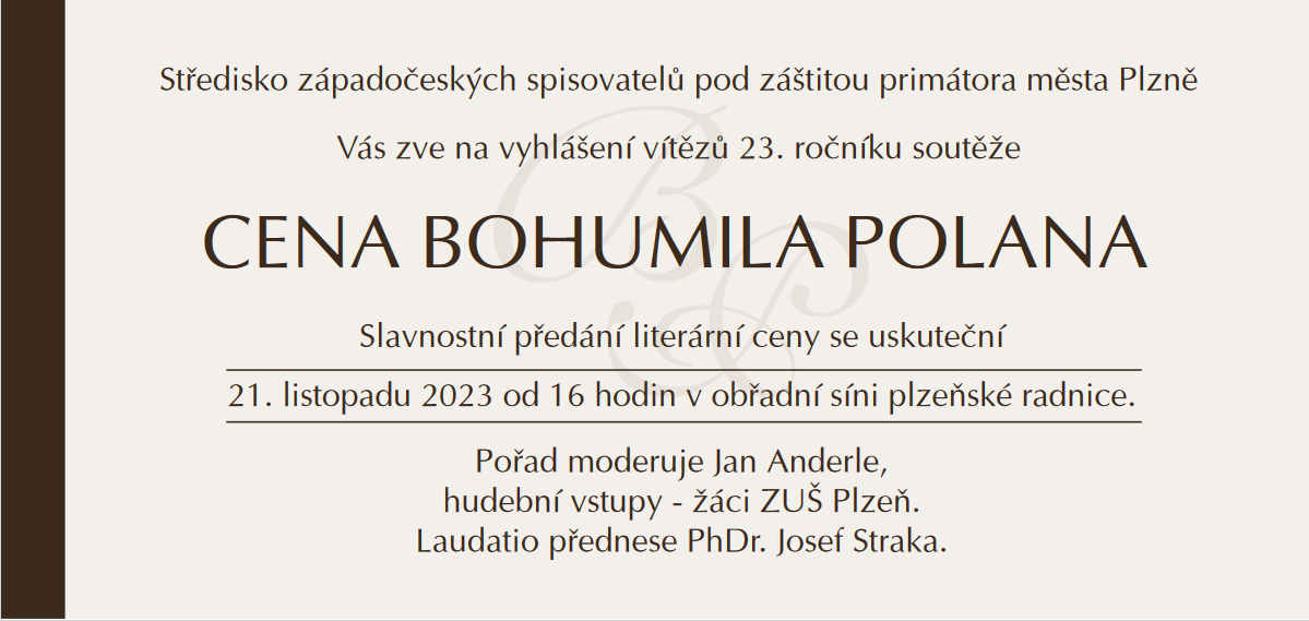 Středisko západočeských spisovatelů vyhlašuje pětadvacátý ročník Ceny Bohumila Polana!