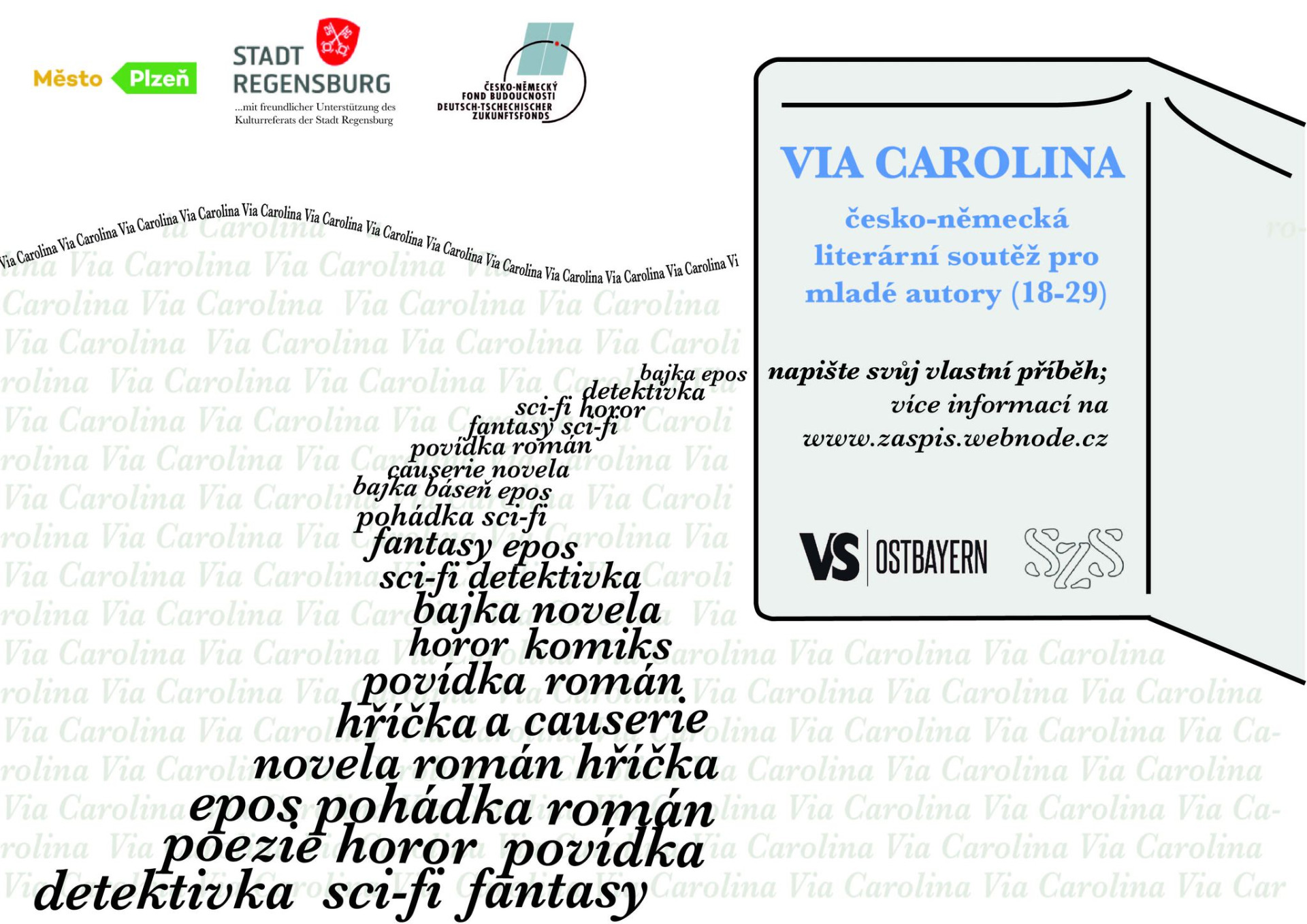 Soutěž se jmenuje Via Carolina podle cesty, která spojovala Prahu s Norimberkem, vedla přes západní Čechy do Bavorska (což jsou sídla našich spisovatelských komunit). Spojovala Čechy a Německo v rovině obchodní, ale také kulturní. A to je hlavní téma soutěže – propojení, identita, hranice a pohyb v současné střední Evropě. Tohle téma by se ve tvém textu mělo objevit, klidně se ho chop metaforicky a veeelmi volně, nebo buď naopak doslovný a piš třeba o cestování – jsme zvědaví, jak to pojmeš a jak se s tím vypořádáš.